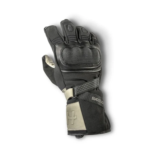 Varm, vanntett vinterhanske i en kombinasjon av geiteskinn og tekstil. Buede fingre, Innoborn® 40 g i håndflaten og 180 g på håndryggen, og støpte knokebeskyttere.